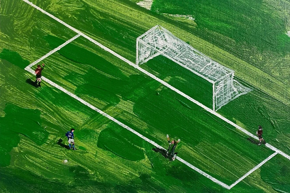 De lo que me he dado cuenta, de que internacionalmente y también a nivel nacional está saliendo mucha obra de fútbol. Te vas viendo con tus pares y te vas dando cuenta de gente que está pintando fútbol o chicas que lo interpretan desde otros lados, empiezas a ver a muchos colegas y personas que se interesan por esto, por el nicho del fútbol y lo que gira en torno a ello. Los ingleses se vuelven locos con esta cuestión, el fútbol los trastornó. Recibo muchos comentarios de fanáticos por interno. En cuarentena me encargaron obras, he vendido obras de fútbol hacia afuera, en especial gracias a esto de que trabajo en serie.