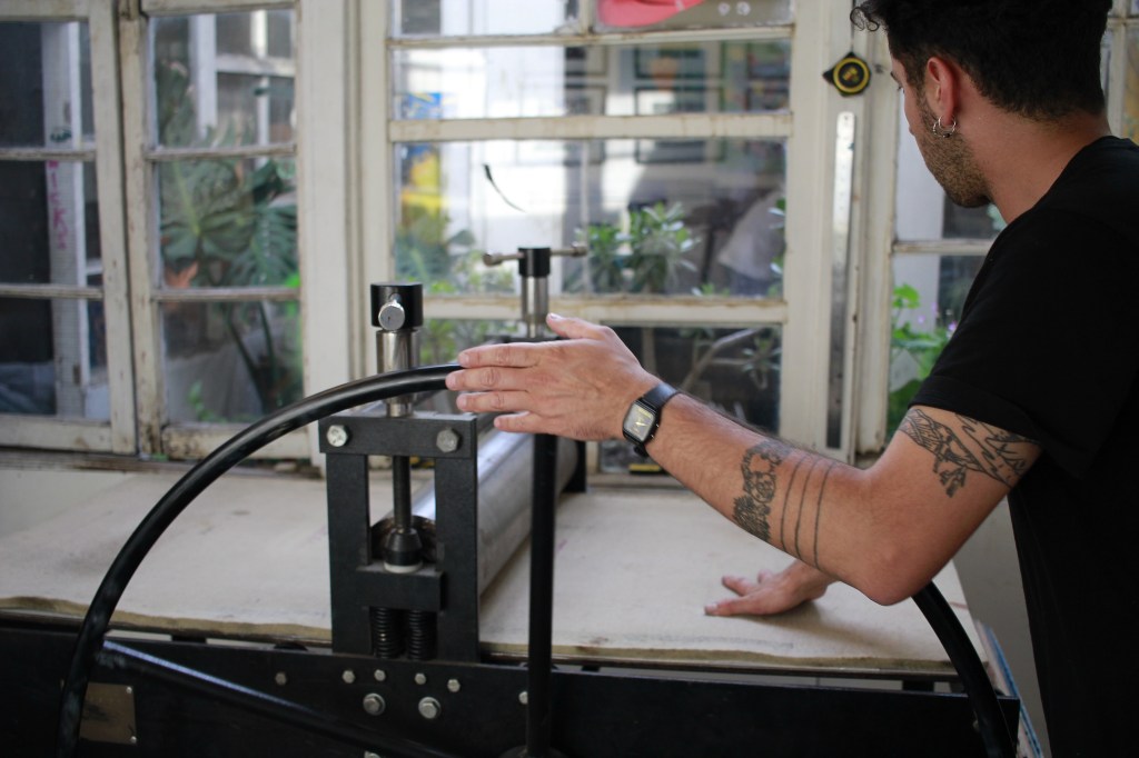 Yo estudié artes visuales, aunque familiarmente no vengo de ahí. Tuve el ramo de música en tercero y cuarto medio y dije «Me gusta esta cuestión». Pero no sabía lo que era el arte ni a lo que iba, tenía ese sueño idílico de que iba a ser Van Gogh. Conocí el grabado y empecé a trabajar con cosas relacionadas con mi hogar, enganché con la cultura pop a través del pan, la marraqueta y el trabajo en serie. Cuando ya estaba saliendo de la escuela hice un grabado de fútbol porque quería regalárselo a mi viejo para un cumpleaños. A partir de eso salió una serie de veinte grabados, la primera serie que hice de fútbol. Tenía un maestro, Guillermo Frommer, quien me sugirió que no fuera tan pretencioso con la obra. Estaba en esa de buscar un concepto, tratar de hacer instalaciones, encajar de cierto modo en este círculo de las artes visuales y el mundo contemporáneo del arte. Yo creo que ese punto me marcó y me llevó a decir «Sabís qué, a mí me gusta el grabado, me gusta el fútbol, me gusta el completo, la cultura pop. Voy a trabajar con eso».